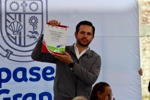 Por su parte, el Notario Miguel Ramírez Silva entregó al Presidente Municipal un ejemplar del Protocolo Agrario Nacional, documento que unifica los actos notariales en materia agraria para facilitar la regularización de la tierra.