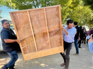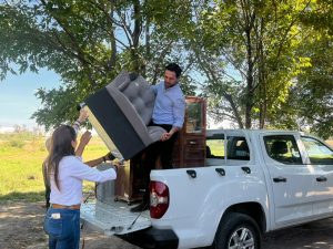 La mañana de este jueves, el Presidente Municipal, Chelis Oliveros y la Subsecretaria de Inclusión e Inversión para el Desarrollo Social, Carla Sofía Padilla Ledesma, hicieron la entrega de muebles y electrodomésticos a las familias afectadas.