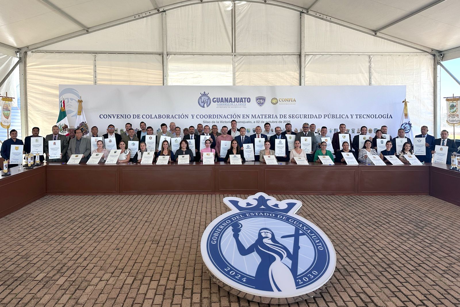Apaseo el Grande, Gto., a 02 de octubre 2025.- El Presidente Municipal, Chelis Oliveros Usabiaga, participó en la firma del Convenio de Coordinación y Colaboración en materia de Seguridad Pública y Tecnología, con el cual Guanajuato se convierte en el primer estado del país en tener conectados a sus 46 municipios en una misma red...